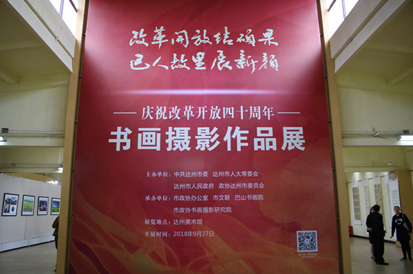 【本网讯】为庆祝改革开放四十周年,以习近平新时代中国特色主义思想为指导,深入学习贯彻党的十九大精神,歌颂改革开放40周年。由中共达州市委、达州市人大常委会、达州市人民政府、达州市政协委员会联合主办,达州市政协办公室、达州市文联、巴山书画院、市政协书画摄影研究院联合承办的“改革开放结硕果,巴人故里展新颜”庆祝改革开放40周年书画摄影展于9月27日在巴山书画院开展。