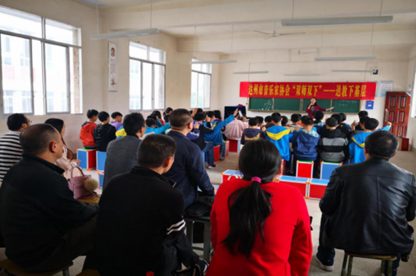 【本网讯】为深入贯彻落实习近平总书记在全国文艺工作座谈会上的重要讲话精神,进一步落实达州市委、市政府关于《文艺工作者下基层体验生活和下基层普及文艺知识》的 “双下”精神,10月25日,达州市音乐家协会“到人民中去”——送教下基层活动在宣汉县马渡关中学举行。达州市音协副秘书长张鹤馨、理事伍焰为马渡关中学初一学生带去了生动的音乐课。