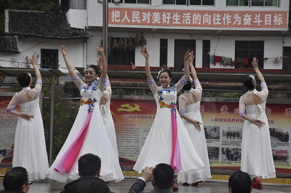 市文联主席吴洁如,副主席肖朝萍,副主席、市曲协主席谭仕海,创作部主任、办公室负责人杜涛,组联部主任吴星辰、大竹县石桥铺镇党委书记费代兵、人大主席董通志、镇党委委员肖忠贤以及镇党委委员兼指挥村第一书记黄红波出席活动。演出艺术家,指挥村在家村民,记者等共计300余人观看演出。