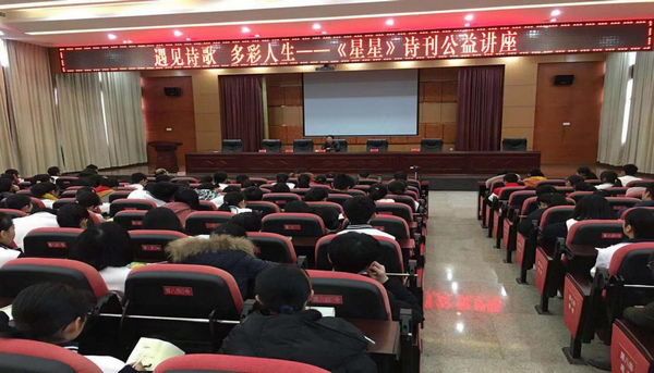 【本网讯】12月7日,由《星星》诗刊社、渠县文联、渠县文体广新局主办,渠县诗歌协会、渠县图书馆承办的“遇见诗歌 多彩人生”——《星星》诗刊公益讲座走进渠县校园,《星星》诗刊社编辑、知名诗人黎阳在渠县第二中学、渠县三汇中学激情开讲。30余名诗歌协会会员和两校1000余名师生聆听了讲座。
