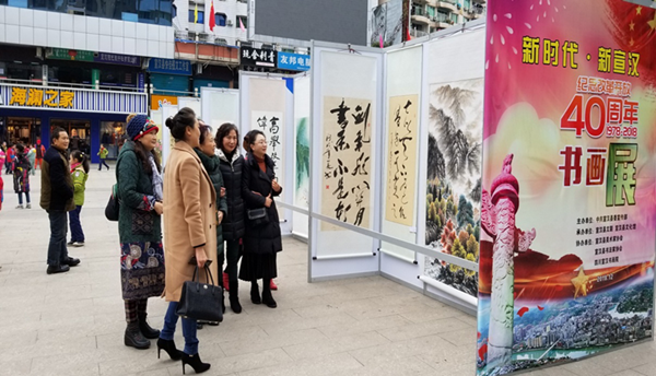 【本网讯】12月12-13日,由中共宣汉县委宣传部主办,宣汉县文联、宣汉县文化馆承办,宣汉县书协、宣汉县美协、宣汉书画院协办的“新时代 ·新宣汉” ——庆祝改革开放40周年书画展在宣汉县城东门广场展出。展出期间吸引了众多市民、书画爱好者和学生前来观展,大家对本次书画展给予了高度评价。