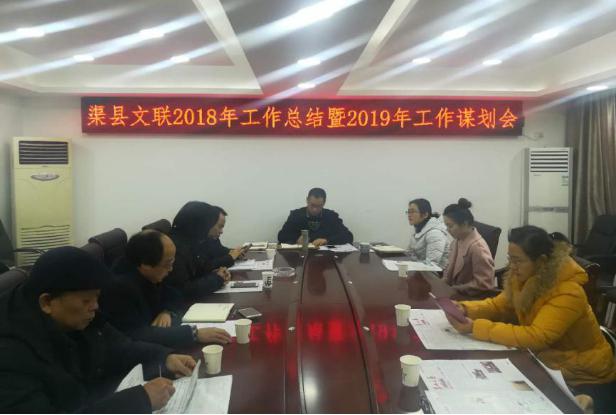本网讯 1月3日,渠县文联2018年工作总结暨2019年工作谋划会在县委宣传部办公室召开。渠县文联主席团成员及文联下属14个文艺家协会的相关负责人参加了会议。