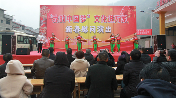 【本网讯】1月31日,带着万源市委、市政府的亲切关怀和浓浓深情,万源市委宣传部、市文广新局组织文艺小分队为钟停乡老百姓送去了新春文化大餐。