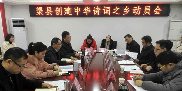 会议指出,习总书记在全国宣传思想工作会上明确提出“举旗帜、育新人、兴文化、聚民心、展形象”十五字要求,渠县创建“中华诗词之乡”既是“兴文化”的具体实践,也是为了进一步传承中华优秀诗词文化、弘扬繁荣宕渠文化重要抓手。