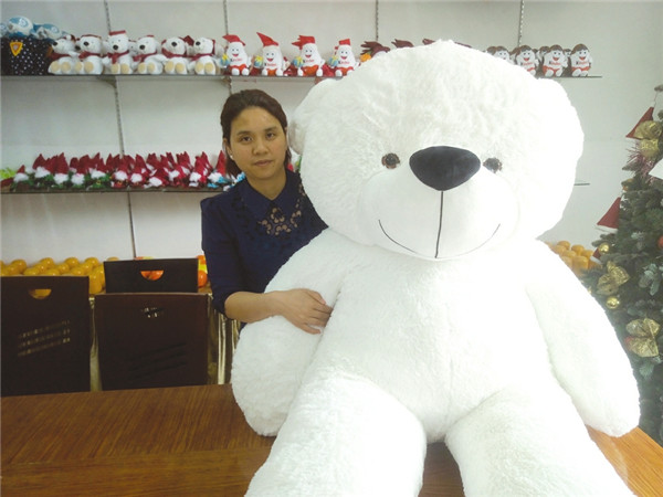 张素娟和出口美国的玩具熊在一起