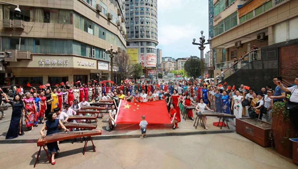 【本网讯】4月27日,为庆祝新中国成立70周年,达州市建市20周年,在“五·一”国际劳动节来临之际,在达州市文联的关怀指导下,在通川区大北街社区居委会的大力支持下,达州市旗袍文化艺术协会组织开展了“爱祖国·爱家乡”送文化进社区快闪活动。