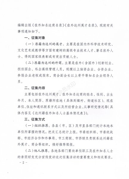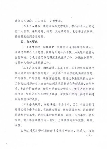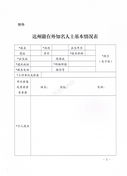 附件:关于征集达州籍在外知名人士资料的通知