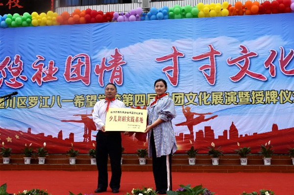 【本网讯】5月29日,达州市舞蹈家协会在通川区罗江八一希望学校举行以“悠悠社团情,寸寸文化意”为主题的第四届社团文化展演暨授牌仪式。活动中,罗江镇八一希望小学被达州市舞协授予“少儿舞蹈实践基地”。