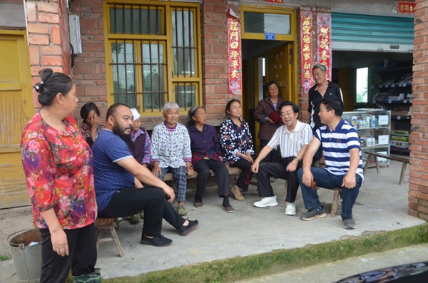 初夏时节,阳光明媚。艺术家们沿着蜿蜒的乡村公路,驱车来到了通川区北外镇张金村,青山绿水,崭新的农舍,一派新农村美丽景象。村支书金家忠和村主任曾庆玉热情地向大家讲述张金村通过精准扶贫后发生的可喜变化。当看到几个老人在院坝里悠闲地晒太阳时,市剧协主席王保荣和市剧协顾问、国家一级作家宋小武立即走过去与他们坐在一起,面对面的促膝交谈,拉起家常,详细询问他们的生活情况,了解精准扶贫带来的新变化、脱贫现状和新农村建设面貌,艺术家们无不被所见所闻叫好,为国家的精准扶贫政策鼓掌,为翻天覆地的新农村巨大变化点赞。