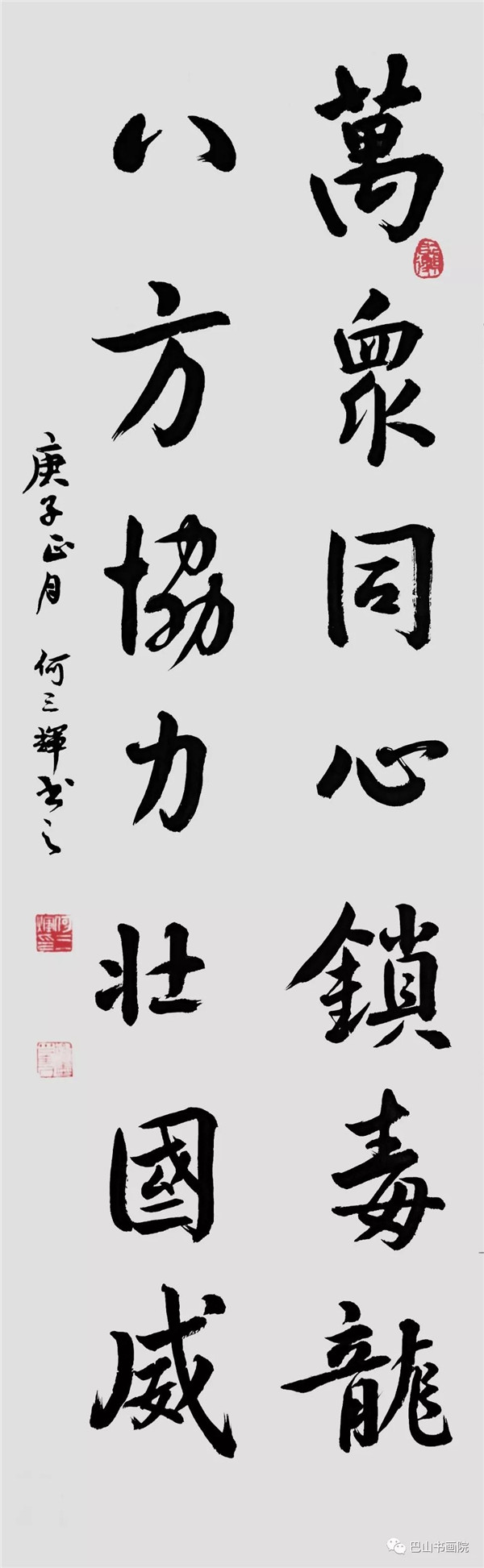 瘟祟凶波夜撼城 全民抗疫奋先声 神州氛靖晴明日 振臂啸呼登太平 陈中华书