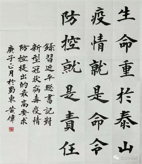 生命重于泰山 疫情就是命令 防控就是责任 黄伟书