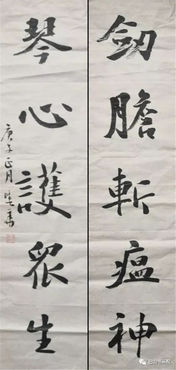 剑胆斩瘟神,琴心护众生。 尺寸:130cmx30cmx2 陈小华书