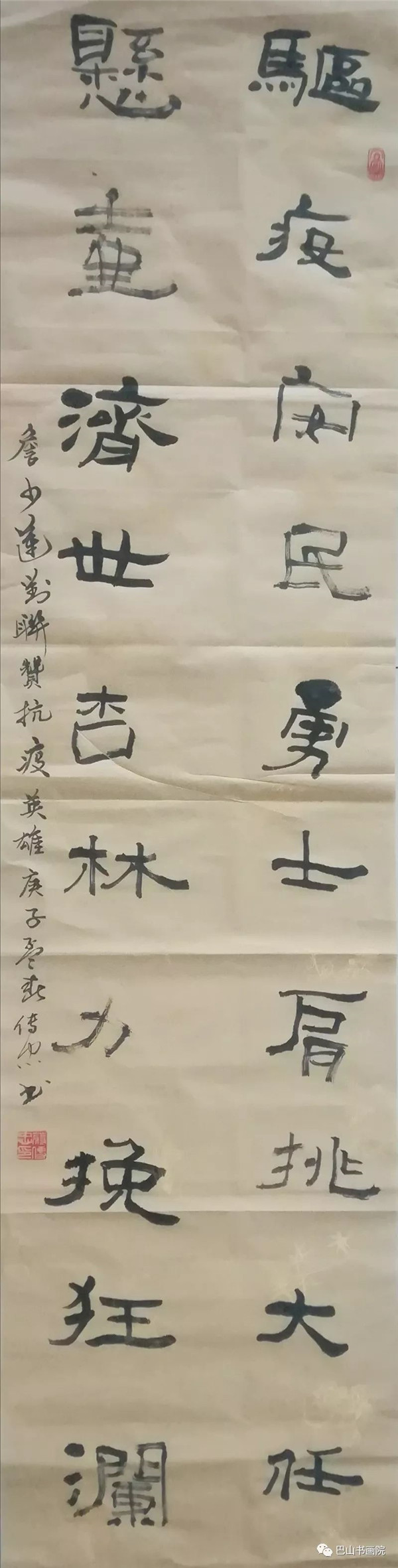 驱疫安民勇士肩挑大任 悬壶济世杏林力挽狂澜 尺寸:138cmx34cm 蒋传忠书
