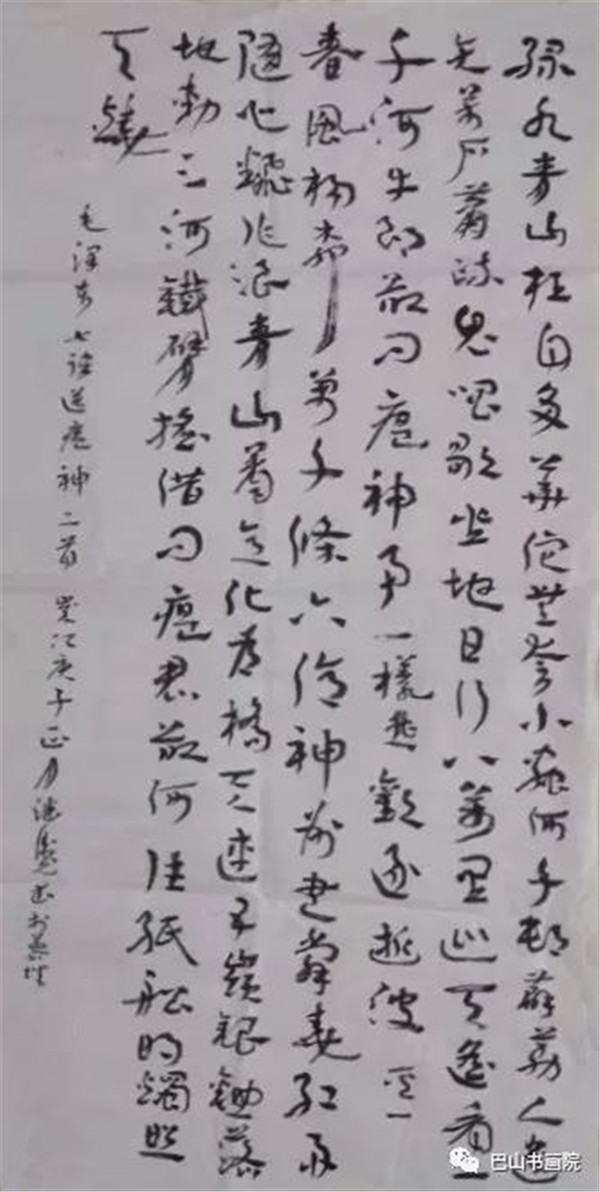 毛泽东《送瘟神》 绿水青山枉自多,华佗无奈小虫何! 千村薜荔人遗矢,万户萧疏鬼唱歌。 坐地日行八万里,巡天遥看一千河。 牛郎欲问瘟神事,一样悲欢逐逝波。 春风杨柳万千条,六亿神州尽舜尧。 红雨随心翻作浪,青山着意化为桥。 天连五岭银锄落,地动三河铁臂摇。 借问瘟君欲何往,纸船明烛照天烧。 尺寸:138x60cm 李昱杉书