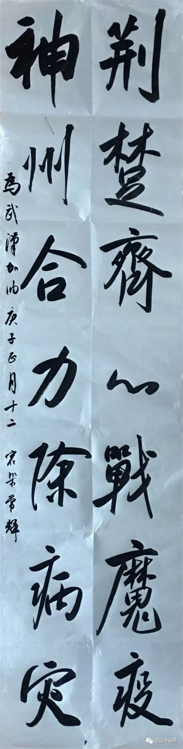 荆楚齐心战魔疫,神州合力除病灾。 尺寸:138cmx50cm 常辉书