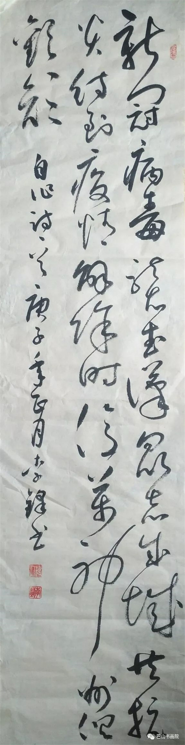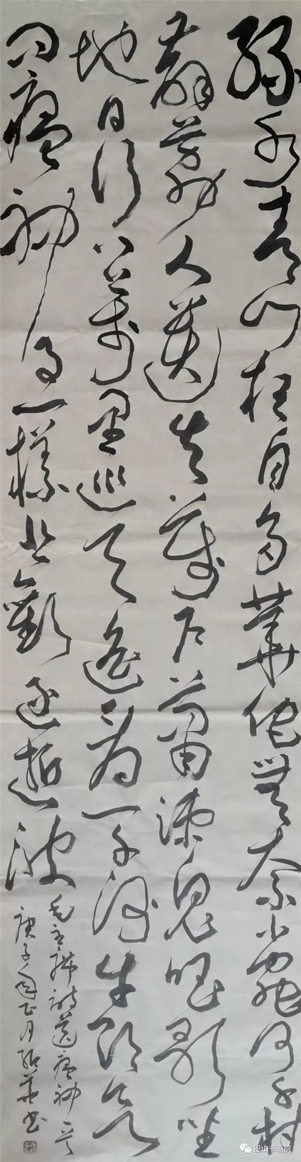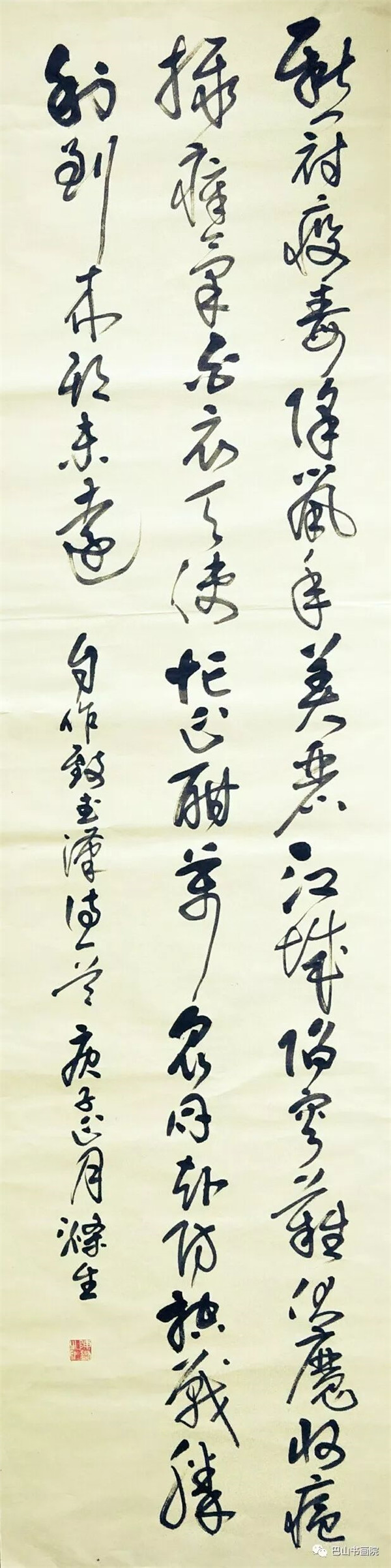 《致武汉》 新冠疫毒降鼠年,美丽江城陷灾难。 伏魔收瘟摄瘴气,白衣天使忙正酣。 万众同赴防控战,胜利到来期未远。 尺寸:180cmx49cm 陈涤生自作诗