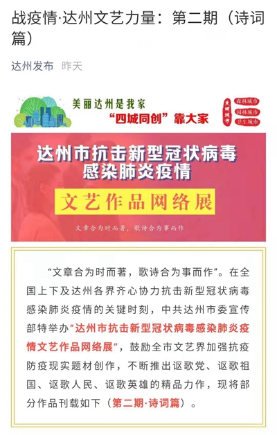 特稿:文艺战“疫”,达州文艺界在行动!