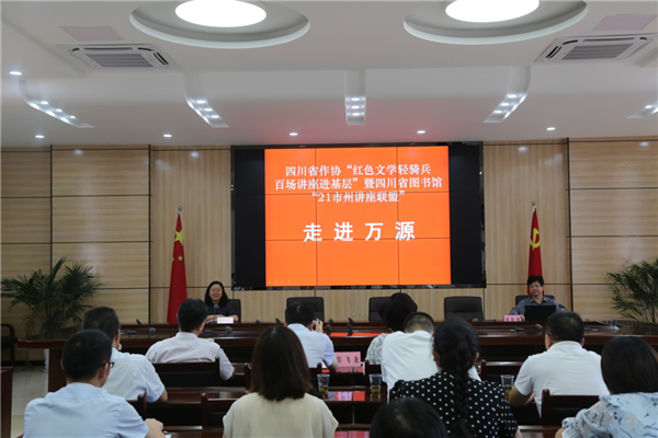 【本网讯】8月24日,四川省作协“红色文学轻骑兵·百场讲座进基层”活动走进万源市,人民日报社高级记者、中国作家协会会员、四川省作家协会报告文学委员会主任刘裕国作了《新闻的内核 文学的表达——浅谈报告文学创作》专题讲座。省作协副秘书长、创联部负责人彭飞龙,达州市作协主席吴洁如,万源市委常委、宣传部部长唐启文出席活动。