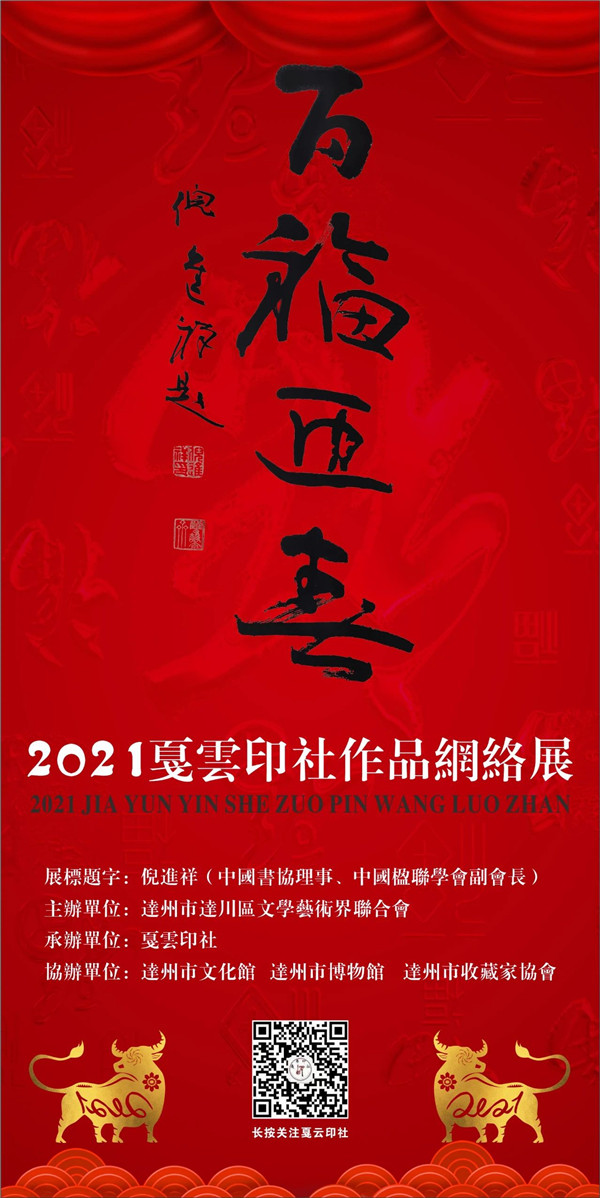 【本网讯】由达川区文联主办,戛云印社承办,达州市文化馆、达州市博物馆、达州市收藏家协会协办的“百福迎春”2021戛云印社作品网络展(书法篇)开展。