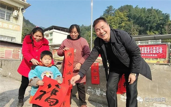 【本网讯】1月14日,由中共达州市委宣传部、达州市文联、巴山书画院、达州市书协联合开展的书法家送万福进万家公益活动走进市委宣传部、市文联联系扶贫点大竹县石桥铺镇指挥村。为脱贫村的乡亲们送去新春的祝福与温暖,鼓励他们坚定信念、再接再厉,走好乡村振兴之路。
