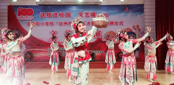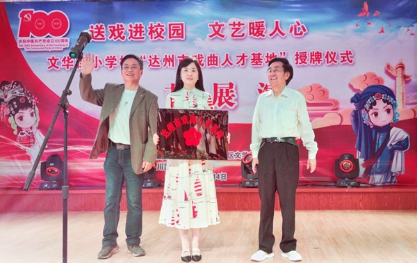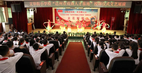 【本网讯】5月14日,在建党百年华诞来临之际,为弘扬中华优秀传统文化,让孩子们学习中华传统文化精髓,领略川剧艺术的无穷魅力,由达州市文联主办,通川区文联、达州市剧协承办,通川区文华街小学协办的“送戏进校园·文艺暖人心”演出活动暨“戏曲人才基地”授牌仪式在通川区文华街小学开展。