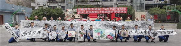 【本网讯】今年是中国共产党建党100周年,为深入学习党史,传承红色基因,6月8日,通川区文联组织大世纪书画院、通川区美协走进通川区消防救援大队开展“联建更显火焰蓝 书画共添党旗红”党史学习教育联学联建主题活动,丰富队站文化生活,陶冶艺术情操。