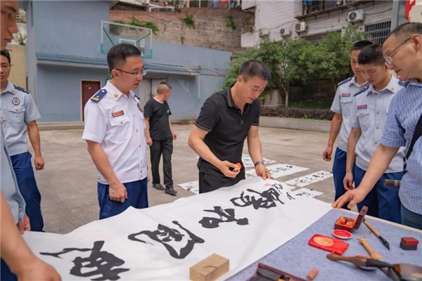 参观结束后,艺术家们现场挥毫泼墨,创作了“对党忠诚 纪律严明 赴汤蹈火 竭诚为民”“人民至上 生命至上”“红门一笑凤凰涅槃 水枪风采书写青春”等书画艺术作品,在场指战员们驻足围观,认真品评,并与书画家们合影留念。(文综)