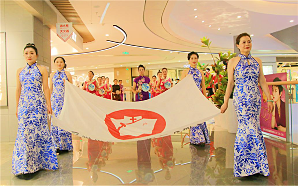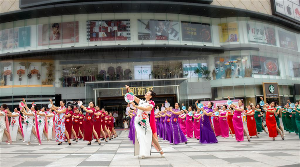 下午14时,参赛佳丽们随着悠扬婉转的音乐,沿着购物中心进行了旗袍巡游并表演了优美的集体舞《旗袍之歌》。