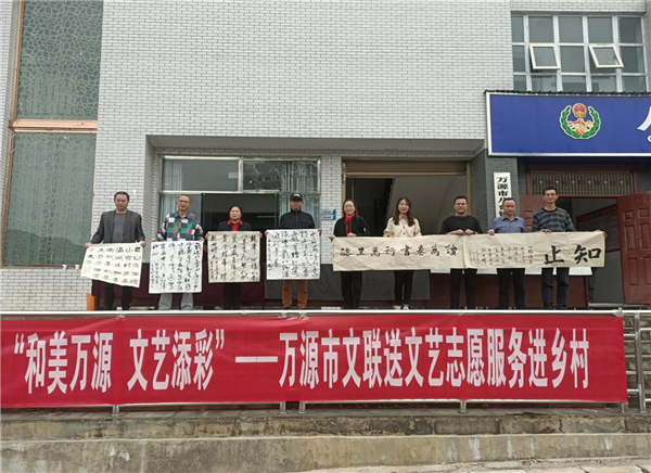 【本网讯】10月13日,万源市文联带领市书协一行到八台镇开展“和美万源·文艺添彩”——送文艺志愿服务进乡村活动。