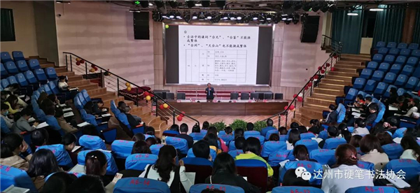 【本网讯】10月11日,达州市硬笔书法协会主席黄伟带领协会会员一行5人前往达川区三里小学开展硬笔书法进校园活动,为学校老师及书法爱好者们带来了一堂精彩的硬笔书法讲座。