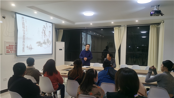 讲座中,学员们首先学习了达州市第五次党代会精神,随后,主讲人梁远利以《开江田城山水的鉴赏与创作》为主题进行现场授课,他为学员们讲解了“中国山水画”的创作、赏析了部分经典“开江元素”美术作品,并引导学员们充分利用开江的“田资源”“水本底”“绿色彩”进行中国山水画创作,着力推出一批弘扬新时代、新阶段主旋律的精品画作,促推全市文化繁荣行动在开江落地见效,为全市强化“示范”担当,放大“中心”优势,奋力打造成渝地区双城经济圈北翼振兴战略支点,谱写全面建设社会主义现代化的达州新篇章贡献开江力量。(王小冬)