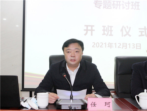 图为:任珂在开班仪式上讲话