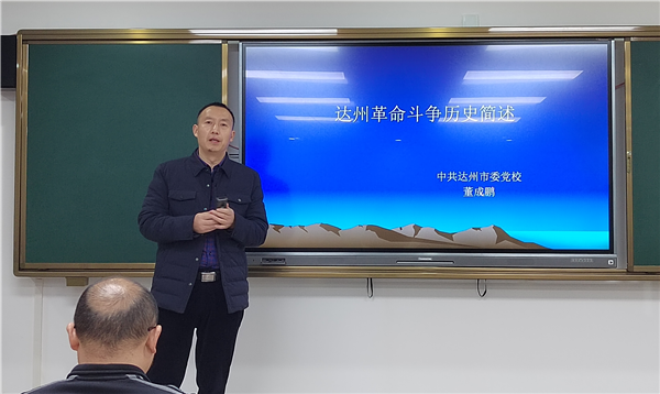 图为:董成鹏授课《达州市革命斗争历史简述》