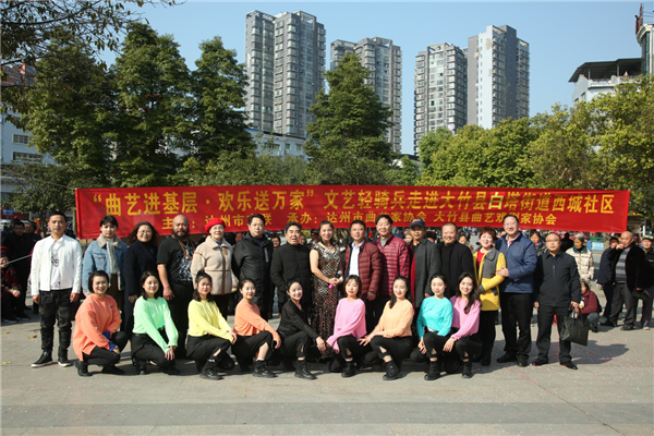 【本网讯】11月30日,为认真贯彻落实达州市委“文艺双下”文件精神,由达州市文联主办,市曲艺家协会、大竹县曲艺戏剧家协会承办的“曲艺进基层·欢乐送万家”文艺轻骑兵惠民演出活动走进大竹县白塔街道西城社区,为广大群众送去一台喜庆而又欢快热烈的精神文化大餐。