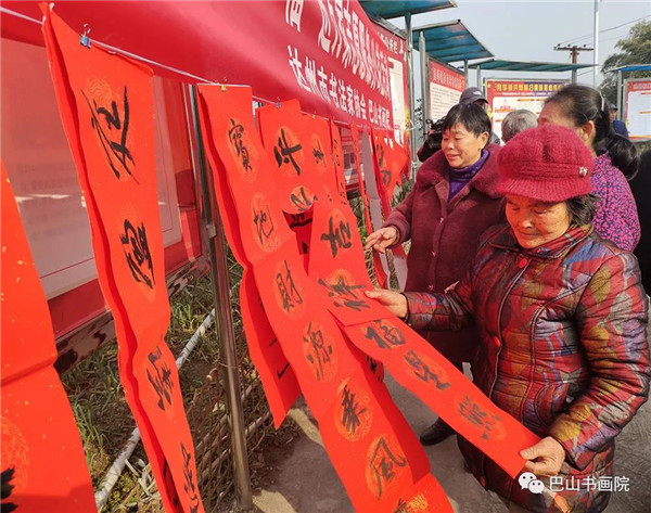 活动中,市委宣传部机关党委书记李芹芹,市文联党组书记、主席任珂,市文联副主席赵玉红,市文联秘书长、三级调研员谢军等领导来到活动现场,一边慰问书法家,一边将现场书写的春联、福帖赠送给当地村民。当村民领到寓意吉祥的春联、大红的福字时,脸上还洋溢着幸福无比的笑容,嘴里面流露出:“我们生活在这样一个美好的新时代真好!书法家们还大老远地跑来我们小山村给我们送春联、送“福”贴,我将好好的把这些艺术作品珍藏起来。”