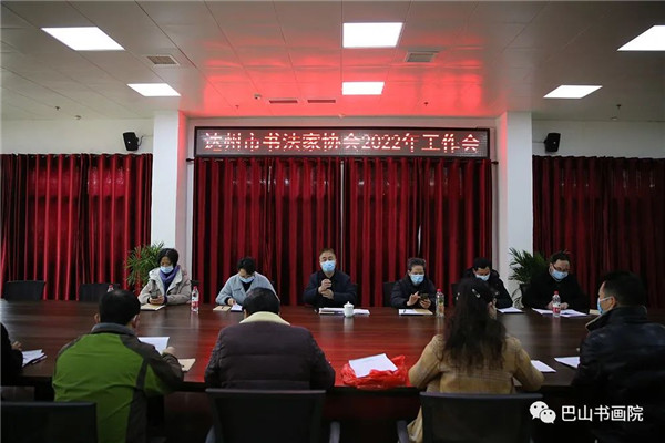 【本网讯】2月27日,达州市书法家协会2022年工作会在巴山书画院艺术交流中心召开。市书协主席马骏华,市书协主席团成员出席会议,各县(市、区)书协主席、部分代表共20余人参加会议。本次会议严格按照疫情防控要求,参会人员自觉佩戴好口罩。