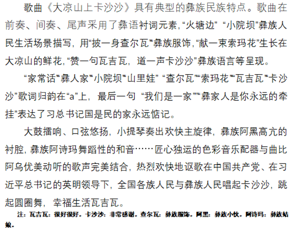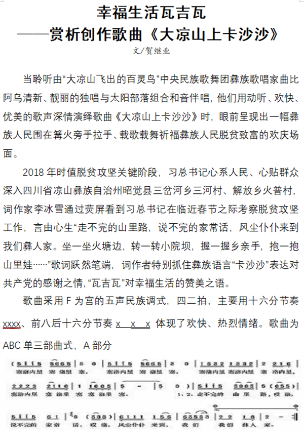 专题评论:幸福生活瓦吉瓦 ——赏析创作歌曲《大凉山上卡沙沙》