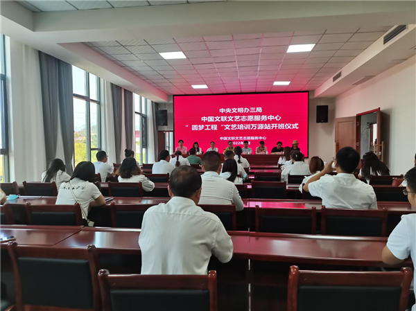 为深入学习习近平总书记在中国文联第十一次、中国作协第十次全国代表大会和在教育体育卫生文化领域专家代表座谈会的重要讲话精神,贯彻落实中共中央办公厅、国务院办公厅《关于全面加强和改进新时代学校美育工作的意见》的安排部署,按照中央文明办“圆梦工程—农村未成年人思想道德建设志愿服务行动”的要求,加大对乡村学校少年宫美育教育帮扶力度,培育德艺双馨的乡村学校少年宫艺术辅导员队伍,6月16日至6月18日,由中央文明三局、中国文艺志愿服务中心联合主办的“圆梦工程”志愿服务行动线下培训走进四川达州万源,万源市百余名乡村学校少年宫艺术辅导员和基层文艺工作者参加培训。