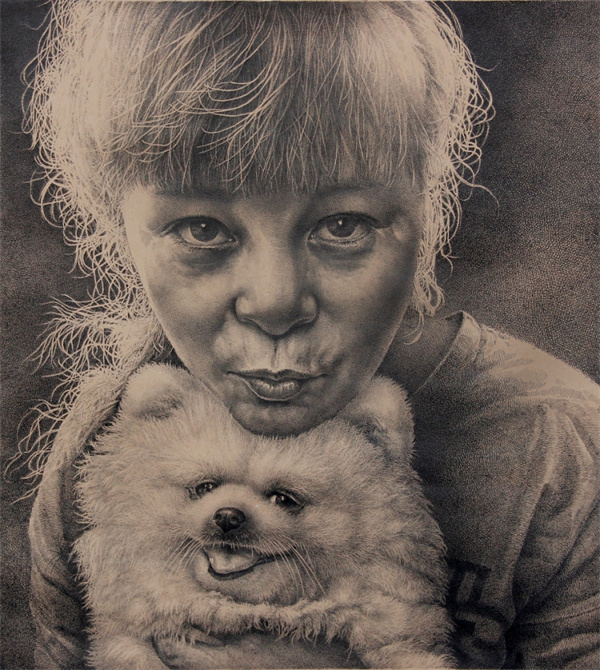 钢笔画《妻子和萌宠》 李尚景 入展
