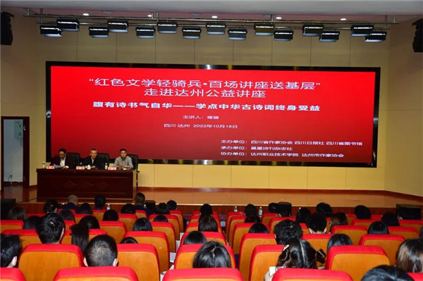 10月18日下午,由四川省作家协会、四川日报社、四川省图书馆主办,《星星》诗刊社承办、达州职业技术学院、达州市作家协会协办的“红色文学轻骑兵·百场讲座送基层”公益讲座活动在达州职业技术学院进行。