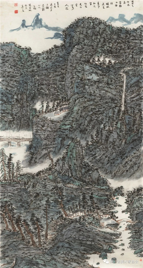 唐天晓 中国画《西城高铁过巴山》181cmx96cm
