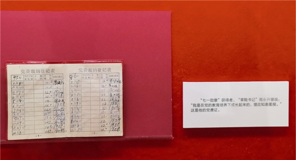 实物2件,分别是周永开党费缴纳凭证、非遗文化达州刘氏竹编的莲子花器一套。