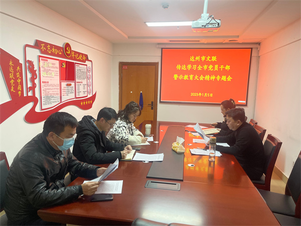 1月5日,市文联召开专题会议传达学习全市党员领导干部警示教育大会精神,市文联党组书记、主席任珂主持会议并讲话。