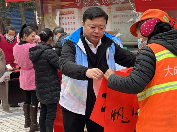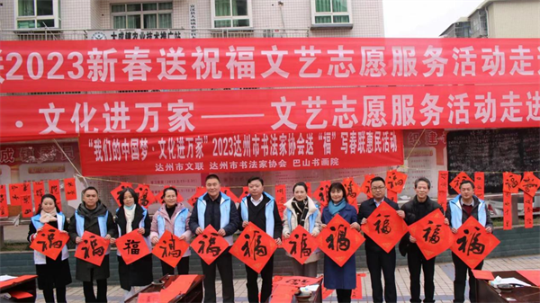 为深入学习宣传贯彻党的二十大精神、省十二届二次全会精神以及市委五届五次全会精神,营造欢乐祥和的春节氛围,把浓浓的年味带到群众身边,让群众真正感受到文化惠民的成果,1月10日,由达州市文联党组书记、主席任珂带队,组织市书协、市摄协一行20余人前往宣汉县大成镇开展“我们的中国梦·文化进万家”志愿公益服务活动。
