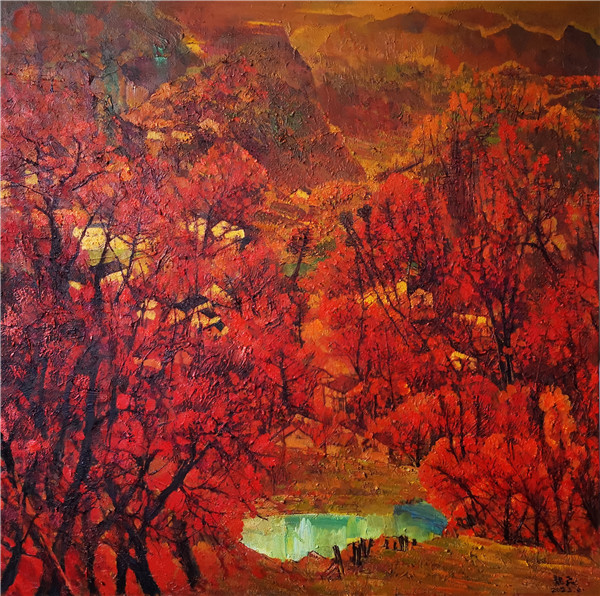 龙飞 油画《秋醉月亮湾》120cmX120cm