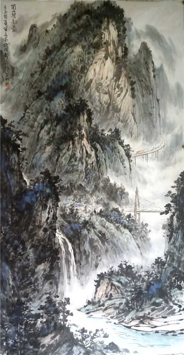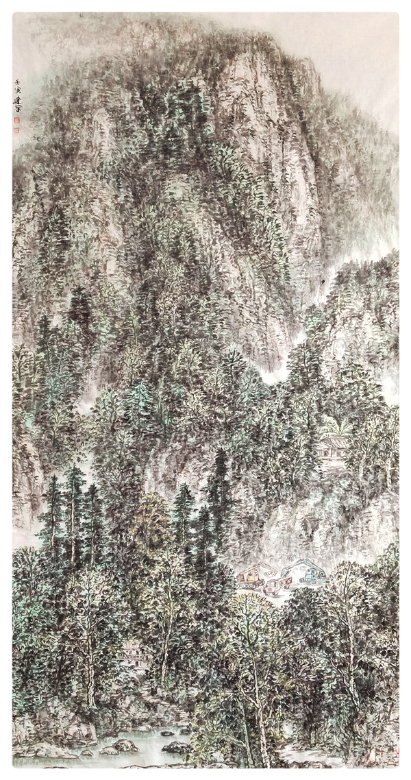 谭开文 国画《蜀山清韵图》180cmx98cm