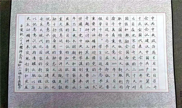 为迎接党的二十大胜利召开,进一步丰富学生的课余文化生活,营造积极向上的校园文化氛围,激发青少年对新时代美好生活的追求和向往,近日,达州市第一中学校凤凰校区初2021级举办了以“翰墨丹青颂辉煌——喜迎党的二十大”为主题的书画展活动。活动中,初2021级学生围绕主题,利用国庆假期积极参与,极力舒展自我风采。