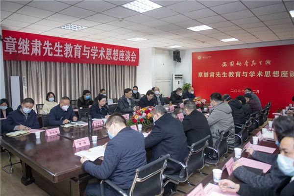 12月21日,学校在艺术传媒大楼召开章继肃先生教育与学术思想座谈会,纪念章继肃先生诞辰100周年,诲而不倦。党委书记王成端教授出席会议并讲话,党委副书记、校长侯忠明教授致辞,副校长程碧英教授主持座谈会。
