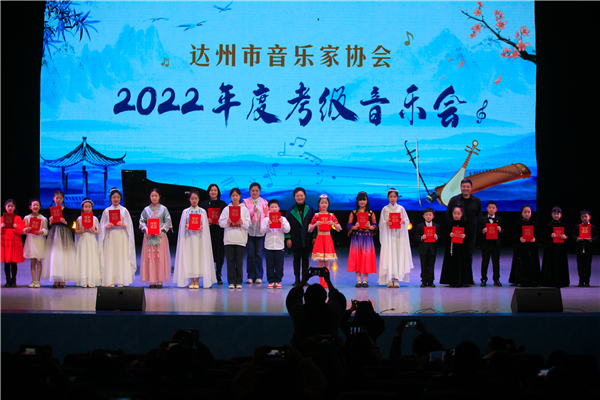 3月4日下午,达州市音乐家协会2022年度考级音乐会展演活动在四川文理学院音乐厅举办。市文联副主席、市音协主席赵英及市音协主席团成员、理事、部分会员和各县(市、区)音协负责人、部分考级指导教师和优秀学员参加展演活动。全市部分艺术考级学生、指导老师以及全体年会参会会员观看展演活动。