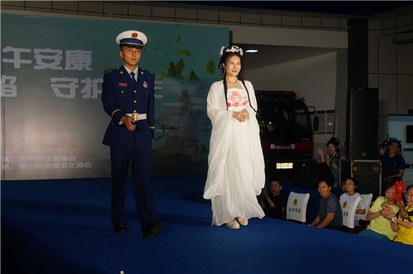 活动中,大队的“蓝朋友”们进行了各项消防技能展示及充满阳刚气息的舞蹈表演,让参与活动的驻地周边居民们深入了解到了防火的重要性和应对灾害的方法,同时尽享力量与艺术结合之美。随后,通川区服饰文化协会以及达州市汉服协会的成员们身着各式汉服,展示历代服饰文化,配以美妙的音乐和舞蹈表演,让观众仿佛穿越回古代的文化时光。活动期间,还有端午节的传统节目包粽子等活动,让观众感受到浓厚的传统文化氛围。现场观众热情高涨,精彩活动高潮迭起,营造出浓浓的节日氛围。